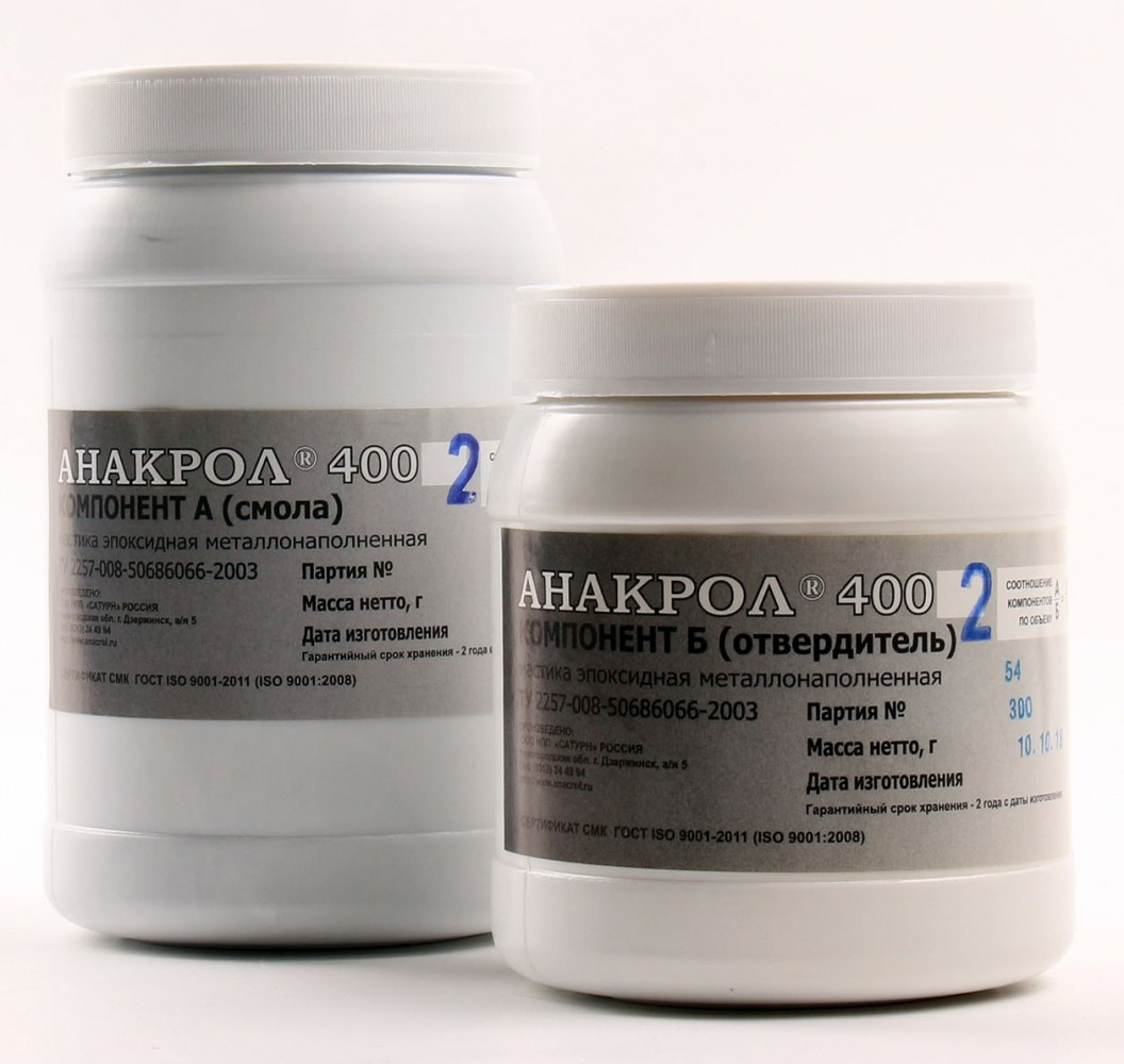 Компонент «А» (эпоксидная смола, наполненная алюминием) и Компонент «Б» (отвердитель).